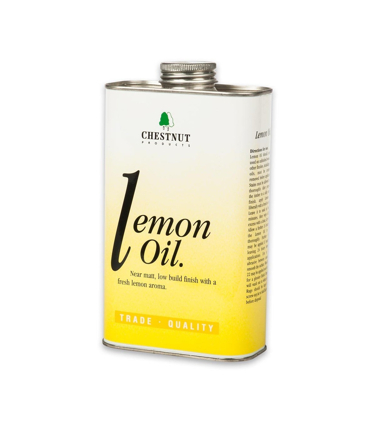 L'huile de citron est une finition mate et antiadhésive pour le bois non traité, avec un léger parfum de citron. Il met en valeur la beauté naturelle du bois et dégage un arôme agréable grâce à l'huile de citronnelle. L'huile de citron ne s'oxyde pas et a une finition résistante à l'eau. Il est idéal pour finir l’intérieur des armoires et des tiroirs. Frottez cette finition imperméable sur le bois avec un chiffon doux.